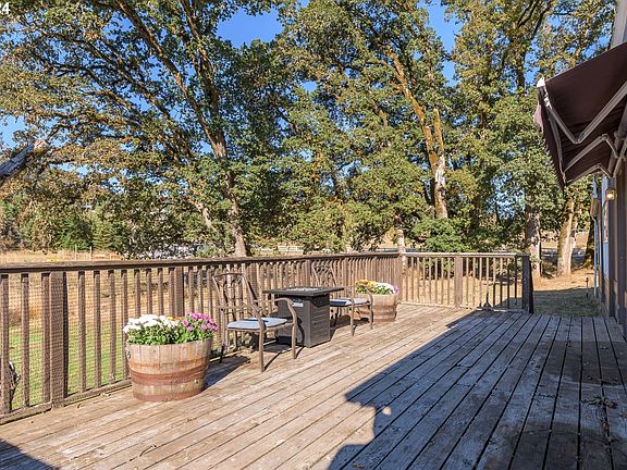Hey, horse lovers and hobby farmers, this one is for you! Hard-to-find, small equine property located just 15 minutes from Beltline, 2 miles from Five Fourteen Vineyards (yes, they do have a tasting room!), and one short “country block” from Territorial Elementary. This manageably-sized 2.13 acre lot is surrounded by larger parcels, which add tons of space and privacy without any extra work or expense. The current owners specifically purchased, designed, and built out the property over several years, ensuring the comfort and care of the humans and horses alike. Their hard work has created a turnkey opportunity for anyone with similar goals. Features include a 22x30 metal barn with storage space, 2 ample stalls with mats and separate runs (easily reconfigured to lead to multiple pastures), a leveled and sanded outdoor riding area/arena, and a wooden bridge over the 3-season creek for easy access between the horse and house sides of the property! The "house side" includes a perfectly-partitioned grassy lawn with fruit trees and a poultry coop, a fully fenced dog (or little human!) run, a storage shed, an oversized (24x34) 2-car garage with additional workshop or storage space, plus full RV hookups. A convenient and durable reclaimed asphalt driveway provides easy access to both the garage and house and the pull-through design saves you or your guests the trouble of backing up trailers. The 3 bedroom, 2 bathroom home features vaulted and coffered ceilings, a large primary suite with jetted tub (the horses can’t have all the perks!), walk-in closets in all the bedrooms, an indoor laundry area, a light and bright kitchen and adjacent dining area with a built-in beverage bar and, finally, a spacious living room with west-facing floor-to-ceiling windows, perfect for watching the sun set over your own slice of paradise!