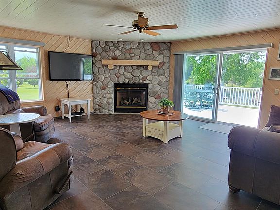Enjoy the famous Inland Waterway or boat to Lake Huron from this beautiful four bedroom home. Great for your Up North Home or generate income by using as an Airbnb. Two lots and two docks are included with 475' river and canal frontage. Lots of summer fun boating, kayaking and jet skiing out your front door. Relax on the maintenance free deck in the sun or under the crank out awning. Sprawling landscaped yard easily accessed from finished walkout basement. Bike, hike and snowmobile on the state trail located just down the road. This beautifully maintain home features fireplace with gas log, new quartz counter tops, new floors, new furnace, 2 car garage and concrete driveway to name a few.