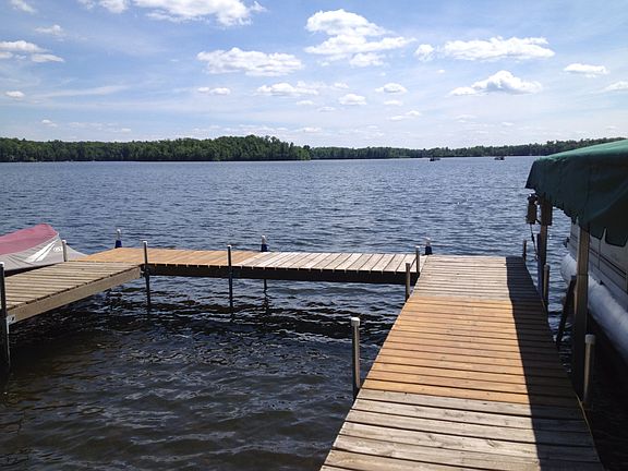 Beautiful Bearskin Lake property featuring 5 BR, 3 BTH with walkout basement and 100' of Level Sand frontage! This low maintenance home is perfect for a family getaway and can sleep a large crowd. In addition, there are 2 fireplaces both offering gas log on each level. The basement fireplace has a vacation mode thermostat for a backup heat source and the upper lakeside deck overlooking the water. The walkout basement patio has a built-in LP line for your grill and lends a level slope to the cute 18x22 ft boathouse with a rail system for your fishing trips. Bearskin Lake is 403 acres and is a class A Musky Lake and has a healthy population of walleye and other game fish. The home is just under 3,000 sqft with reclaimed charm for the original 1900's cabin that sat on the property. Do not miss this opportunity! Come see it today.