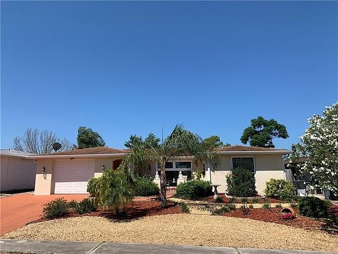 Beautiful "ELDORADO" POOL home that will "wow" the most discerning buyers. You'll notice the freshly painted driveway and paved walkways around the home. Small gate entrance leads to a peaceful and open front porch sitting area. As you walk in, you'll immediately notice the open floor plan. The great room can be used as both living and formal dining room. Also plenty of room in the huge and open kitchen space which makes it a natural gathering area. Two distinct spaces off the kitchen can be used for dining or possible lounge den area. Granite counter tops and stainless stell appl. Granite Island as well. Large 2 bdrm 2 full bath home boasts @1450 sqft. Full baths on both sides of the home with one large bathroom separating the bedrooms (jack and jill sinks). The master bedroom has a walk-in closet and sliders out to the pool area. 3 sets of sliders to the pool in all. This home is GREAT for entertaining. Totally screened and enclosed pool area with covered roofed area off the kitchen sliders. A little rain won't force you inside. Grilling area with concrete pad just outside the screened in Lanai. Paved pathways outside the pool area with one sliver on the Northwest side which is used as a dog run. You will notice the new windows throughout, especially the huge ones (tempered glass) recently installed in the front of the great room. A C is 4 years old. Roof is 9yrs old. Solar panels on the roof heat the pool when desired. Water Heater and Dishwasher 1 year old. This one won't last