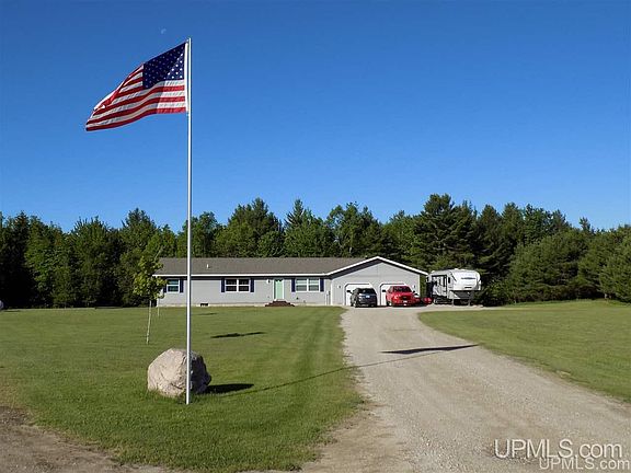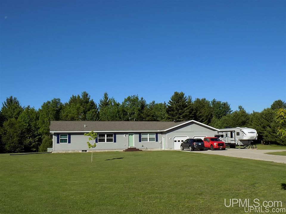 Quality, efficient 3 BR ranch style home in the sought after Thompson area near Indian Lake State Park with convenient boat launch and great camping for your guests. Snowmobile and ORV trails are a short distance away and provide access to miles of nearby state land that is great for deer and bird hunting, hiking, blueberry picking and more. The parcel is just under 16 acres and includes a very large, open yard with a garden and a mature wooded forest with trails, a deer blind and food plot. The home is loaded with options for those with an active lifestyle. The master bedroom is a spacious with two large closets and an en suite bathroom. The full walkout basement is partially finished with a den, bar, storage/mechanical room, possible 3rd bath and large hobby space. The open concept living/dining and kitchen areas flow nicely to the spacious deck with area for grilling and relaxing in privacy, while enjoying your own natural paradise. The attached 28 x 38 finished heated garage is a luxury you deserve. With today's interest rates, the timing is great to make this move in ready home your own!