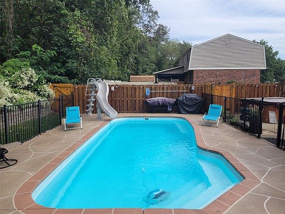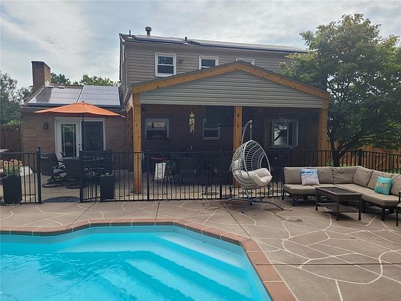 Entertain inside & outside this 3 bedroom brick 2 story located in the Woodlawn Estates Plan. The 29'x12' updated kitchen features a 12'x12' dining area & has a bar with a beverage refrigerator, hardwood floors, & all appliances. The 1st floor family room with a brick wood burning fireplace opens to your outdoor paradise featuring a heated in-ground pool, 20'x14' covered patio with a cathedral ceiling, Tiki Bar w/ electric, a firepit, an outdoor shower, 14'x11' shed, and wiring for a future hot tub. A foyer entry & sunken living room round out the 1st floor. A lower level finished game room & powder room offer another space to party or chill. The 2nd floor provides 3 spacious bedrooms including a master bedroom that has a bathroom with a huge walk-in shower. The main bathroom has been updated. A 2 car integral garage & a double wide level cement drive way for off-street parking or playing basketball. The plan has no through streets so traffic is minimal. NEW YEAR - NEW HOUSE!