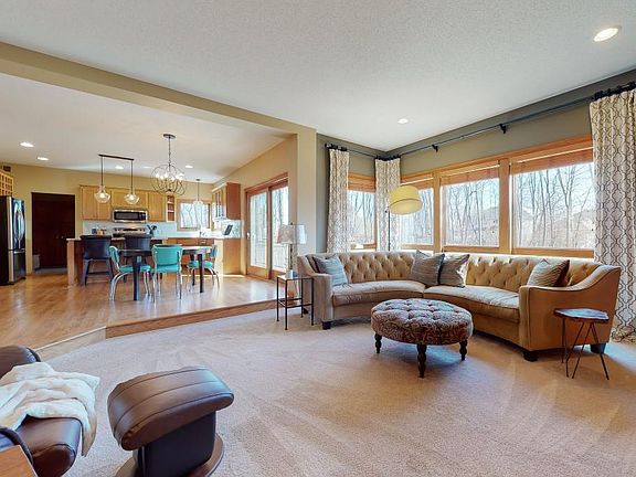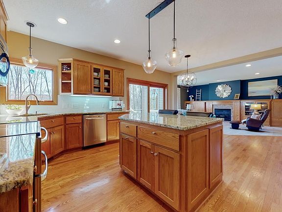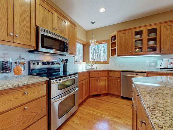 Situated on a large wooded lot with mature trees, this beautiful 5 bedroom 4 bathroom Savage home offers comfort, style and outdoor living! This spacious home features an open concept layout with gorgeous wood floors, custom cabinetry and tons of natural light throughout. The kitchen offers a large center island, granite countertops, subway tile backsplash, stainless steel appliances and plenty of cabinet and counter space. The master suite provides a large walk-in closet with custom organizers and private bathroom. You will love the spacious lower level family room with cozy gas-burning fireplace and wine & mini fridges - perfect spot to entertain! Step outside and enjoy backyard views from the private deck. Conveniently located near parks, restaurants and Prior Lake with easy access to Hwy-13. Beautiful home, inside and out!