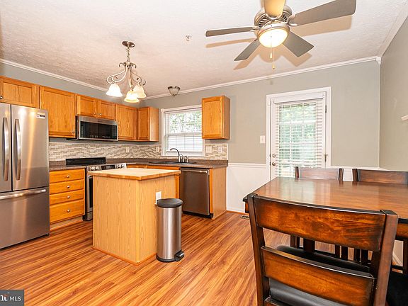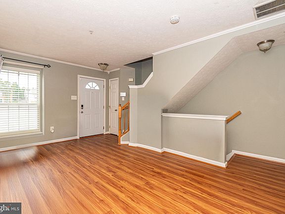 Beautiful 3 bedroom 2 bath home located in sought-after Village of Painters in Owings Mills. This spacious home offers new wood floors throughout the main level, an open staircase, beautiful kitchen with updated appliances, patio door that exits to a deck and fenced in yard for relaxing or entertaining. The upstairs has 2 bedrooms with high ceilings and carpet, both rooms have access to hall bath. Owner suite offers dual closets. The basement has a third room that can be used a bedroom/ family room, or an office with a full bath. The laundry room is also located in the basement. Roof (2025). Close to highway, commuter train, and shopping.
