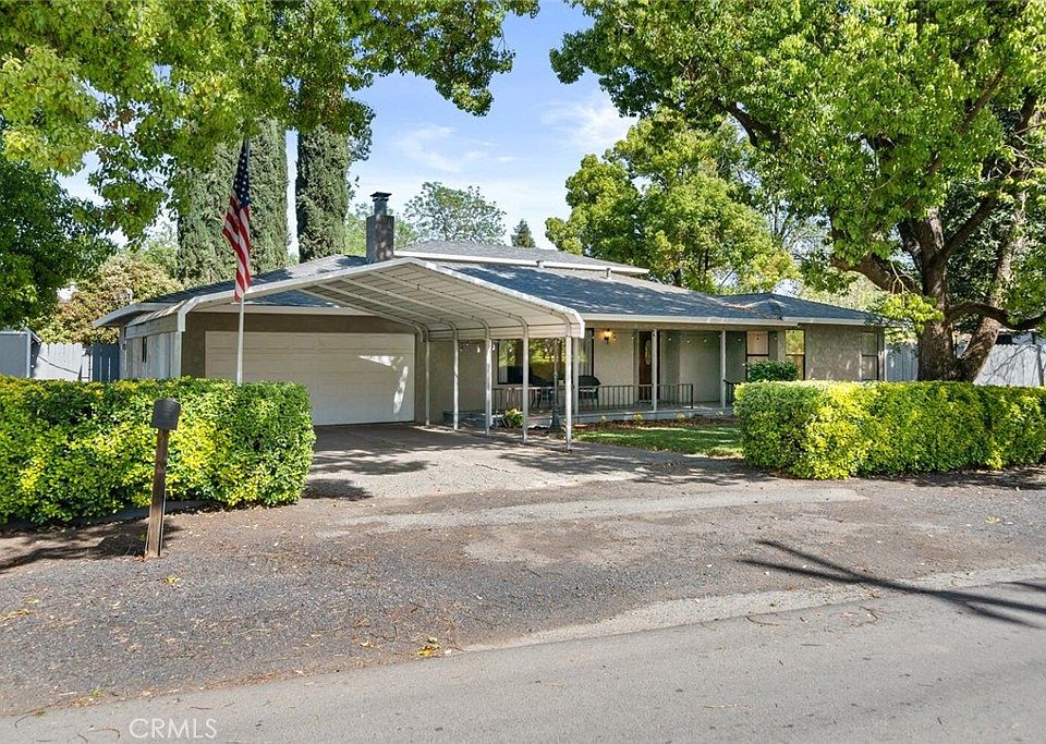 COUNTRY LIVING IN DURHAM! This home is situated on a large corner lot and boasts stunning views of the surrounding walnut orchard from the large covered front porch. Inside the home, you'll find many modern upgrades, including brand new appliances as well as luxury vinyl flooring throughout and superior carpeting in the living room and bedrooms. As you enter the home you are greeted by a bright and spacious living room that features a brick wood burning fireplace, the perfect place to get cozy with a book. The updated kitchen features brand new appliances including, refrigerator, dishwasher, stove, garbage disposal and wine refrigerator! If you need storage, this kitchen has it - plenty of cabinet space and a huge walk-in pantry. Adjoining the kitchen is a separate dining room perfect for family meals and gatherings. The primary suite is located downstairs and features a walk-in closet. The primary bathroom features a newly installed shower and a double sink vanity. There is a HUGE bonus room located downstairs with your own custom built-in bar! This room is perfect as a game room and large enough for a pool table! Upstairs, is a spacious loft-style space that could be used as additional bedrooms, a playroom or an office. There is a fully enclosed laundry room that provides ample space for all of your laundry needs. The new 30-year composition roof provides peace of mind, while the separate fully insulated shop with power offers a great space for hobbies or projects. Have an RV? There is a gated RV pad with full electrical and dump station that provides ample space for recreational vehicles, while the 2-car garage features a work counter and 220 power. Located conveniently near Durham's top rated schools, post office and bank, this home truly has it all, and it is just waiting for you to make it yours. Come see it today