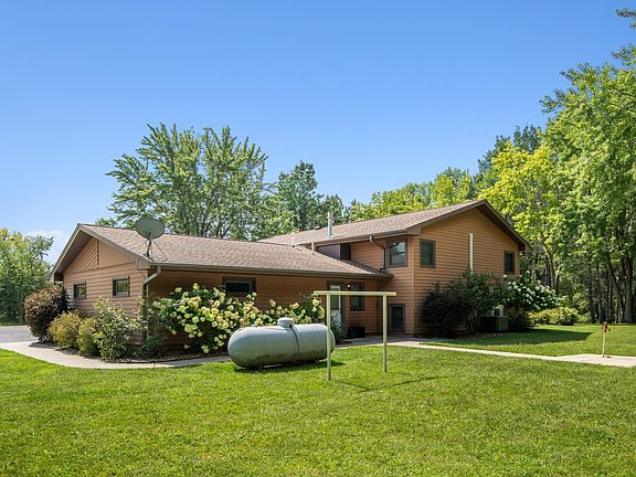Peaceful & serene country setting on almost 7 acres. Excellent condition 4 bedroom home is beautifully updated, in immaculate & impeccable condition. Home offers two living spaces with a total remodel in the lower level in 2014 featuring a full kitchen with stainless steel Energy Star appliances, custom oak cabinets, quartz countertops. The upper level kitchen was updated in 2017 with custom walnut cabinets, quartz counter tops, LVP flooring and stainless steel appliances. Tile and in-floor heat is in both bathrooms & the lower level kitchen area. A gas burning fireplace & surround sound, new paint, carpet, & 2 large bedrooms complete the lower level. A 30' x 60' shed with 12' door, concrete & electric was constructed in 2023. The property also offers an 18' x 28' building with a wood stove that could be used as a man cave / she shed or just for more parking and storage. Sheds have new metal roofs. Be sure to check the supplements to see all the updates. Wildlife abounds at this private & secluded setting. This property was split from an adjoining 60 acre parcel in May 2024. Some reporting on certain websites will not be correct.