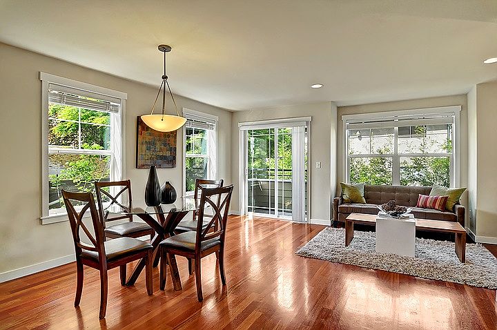Awesome location, several minutes to 99, I-5, North-gate Mall, Greenlake, North Collage. Easy access to take buses to UW, Seattle Downtown. Bright Townhouse built 2005. 3BR/2BA, 1 car garage. Hardwood floor throughout whole house. Very quiet. Small backyard can be planting flowers or vegetables. Best elementary school in WA- Cascadia Elementary, Tenant responsible for electric and water/sewer and trash and cable/internet and phone. Tenant pays credit and background check before Landlord's acceptance to sign a rental agreement. Tenant pays first+last month rent + one month rent for security deposit. No smoke and no pets.