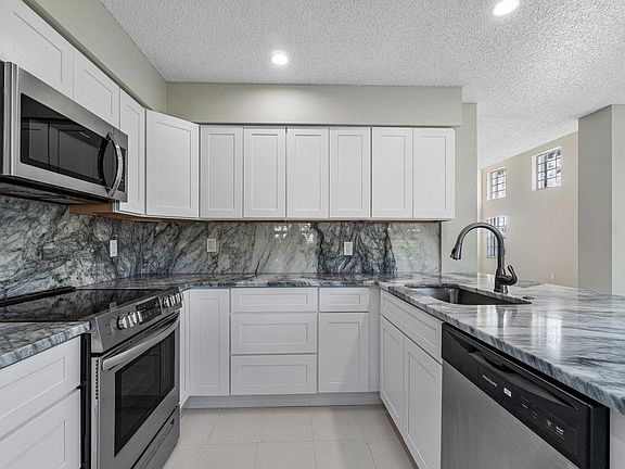 Take a look at this 3 bedroom-3 bathroom corner unit townhouse with a 2 car garage! It has a brand new kitchen and appliances, tile flooring on the first floor and brand new carpet on the second floor. It also has a brand new bathroom upstairs, tons of storage, hurricane accordion shutters on all openings and was just painted. Boca Gardens is a superb location and within minutes to all shopping, restaurants and is zoned for ''A'' rated schools! HOA covers Roof, Exterior Insurance, Cable, outdoor Pest control, Landscaping, 3 Pools, Gym, Tennis courts, basketball courts, playground & more!