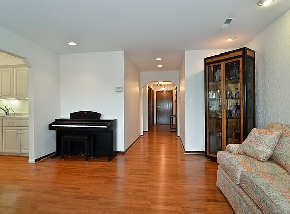 This delightful corner unit has new hardwood floors in the entry, living and dining rooms. The large living room flows into the formal dining room with custom built-ins. The spacious, private balcony is accessible from both rooms. The bright and charming eat-in-kitchen has a useful pantry closet. Master suite has private bath and walk-in closet. Heated garage space included. Pets and rentals ok. New hallway decor.