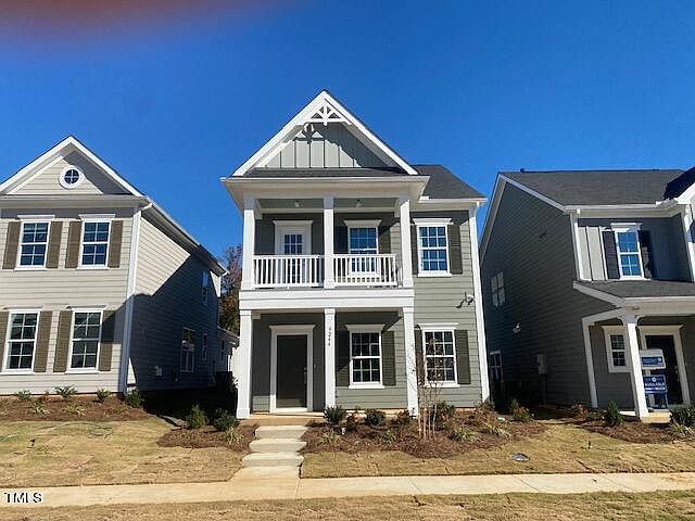 Fall in Love with this Charleston Inspired home with gracious double stacked front porches and Extended Covered Rear Porch! Ready to close just in time for the holiday season, NOVEMBER! Open concept main level beckons you inside. The family room features a warm and cozy fireplace for relaxing evenings by the fire; The flex room is open to the Gourmet Kitchen with gas cooktop and built in microwave and wall oven with stainless steel range hood which is vented to the outside. A large island makes entertaining and meal prep a breeze. The second floor is where you will find a large primary suite with walk out access to your own upper balcony perfect for watching the sunset, reading or just relaxing. Outside of the stunning primary are two spacious bedrooms, a hall bath and laundry closet that complete the second floor. For even more space-this home features a 3rd floor Guest suite with full bath AND walk-in closet!! To make this home even better- it includes a stainless-steel, side by side Refrigerator and Freezer as well as a top load washer and dryer + blinds! You really can an have it all at Kitchin Farms in beautiful Wake Forest! Call and ask about our current incentives - Incentives are subject to change at any time.
