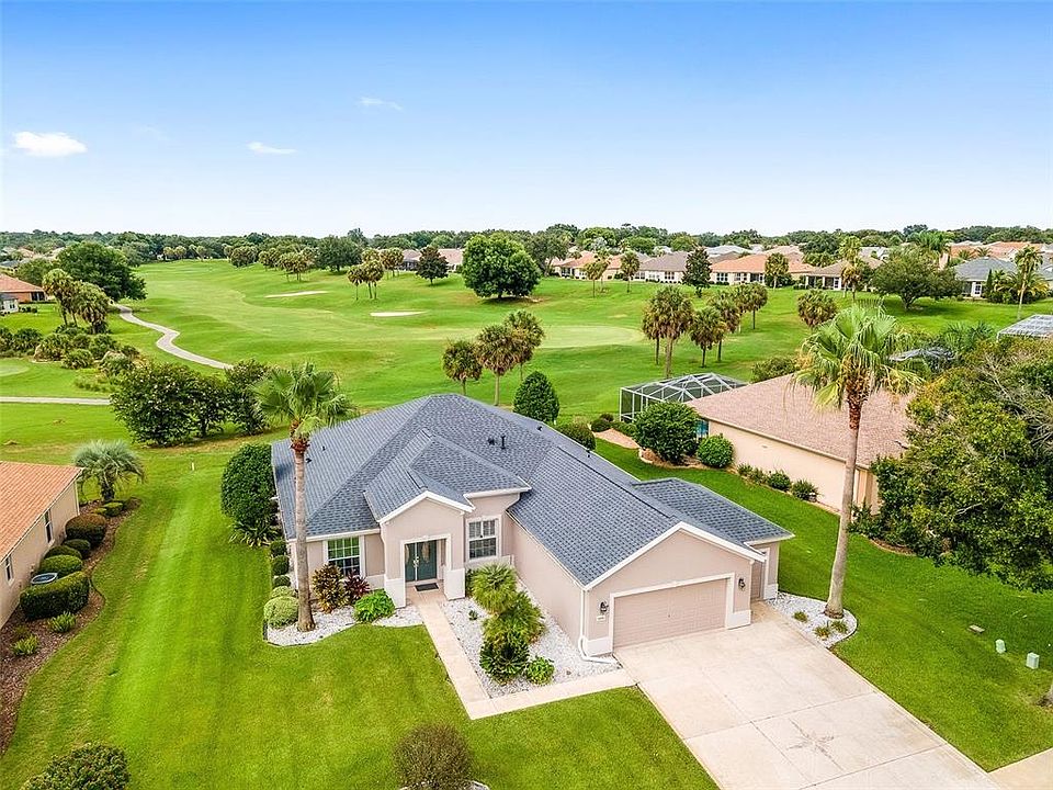 BEST Golf Course Views in Del Webb Spruce Creek Golf & Country Club located just a few miles outside of The Villages. This expansive 3 bedroom PLUS den, 2 full bath home is directly behind the fairway, the views are spectacular! 2,100. square feet of living area under A/C with beautiful finishings. Open and split floor plan, this one owner home is now for sale. Roof 2022, A/C 2017. Extra large garage with golf cart parking. Hardwood flooring in the main areas and a chef's style kitchen with dinette that overlooks the great room. The large Florida room has 8 foot floor to ceiling- windows that allow expansive golf course views. This home has it all, make plans to see it today!