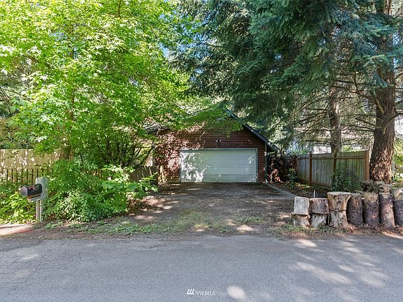 Welcome to your island escape. Surrounded by lush mature trees you can escape the city and relax on this private lot in the Sandy Shores community. Three bedrooms, two bath with laundry room. There is also flex space upstairs for a play room, reading nook or even storage. The home has a huge wraparound deck and a two car garage. Add value to this home immediately by building your dream kitchen. The home has beautiful newer windows which allow plenty of light, cedar lined walls, a wood burning fireplace for those cozy winter nights and plenty of wood to keep the fire going. The roof was replaced in 2012 so plenty of life left to it. Put a little sweat equity into this one, and you will have a beauty in no time all.