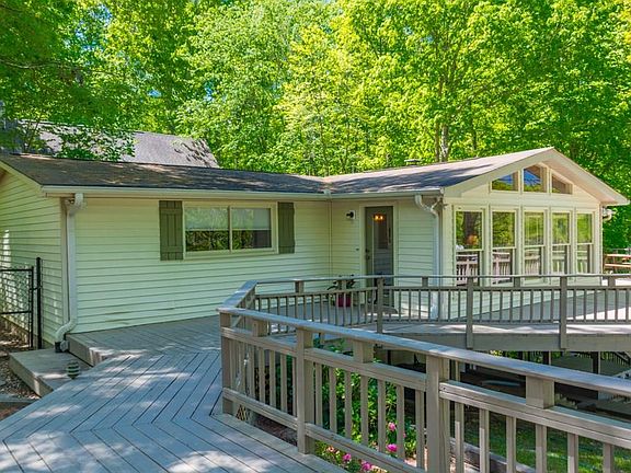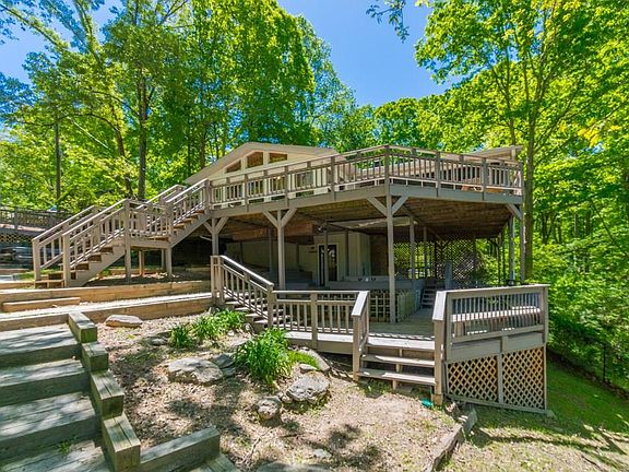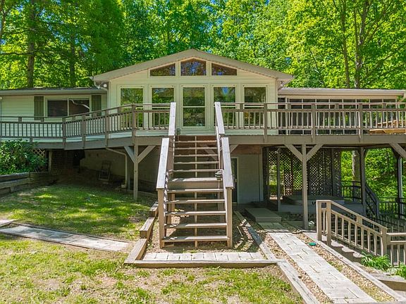 HUGE PRICE REDUCTION!! Be on the lake ASAP in this KILLER house w/ a screened in porch & decks to die for! Great home w open concept; kitchen, living and dining room, all w hardwood floors. 2 BR on main w built in bunk beds (sleeps 6) and Master is in terrace level with FP. Corp line almost in the water with 2, YES 2 DOCKS! A platform dock & a boathouse. Extra viewing deck at water's edge. WIDE OPEN VIEWS and easy walk to docks. PRIVATE, charming lake home with a SEPARATE APARTMENT w kitchenette and 2nd laundry. Fresh paint and new coat of poly on hardwoods.