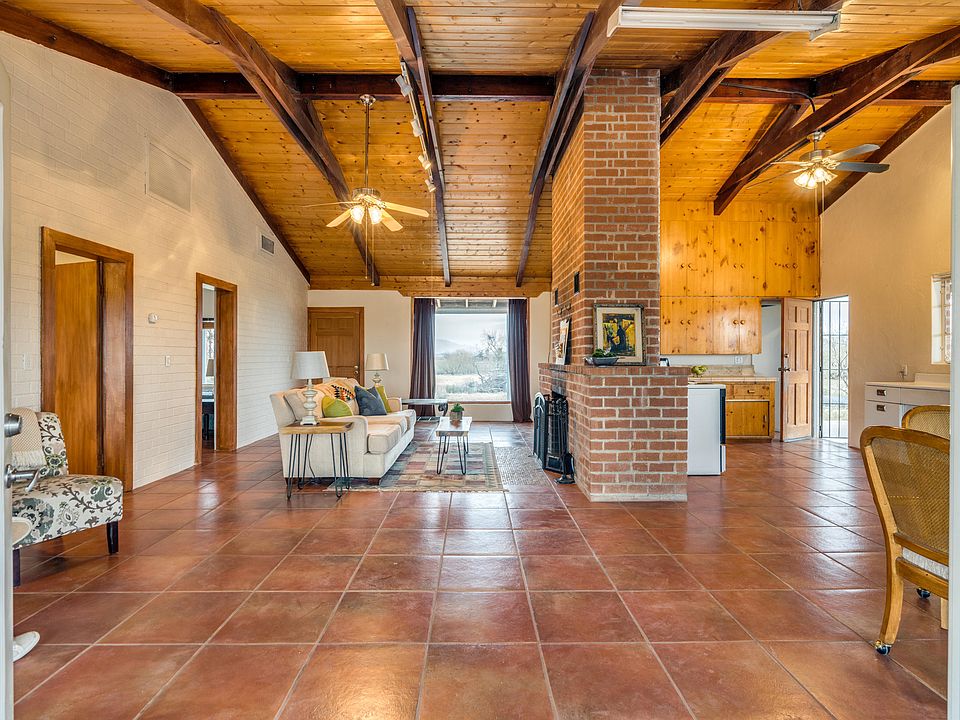 * VIEW VIDEO: https://az.movinghometour.com/22008988_Tucson%20MLS * Secluded Ranch Home on 4 acres with 2 bedrooms and 1.5 baths. Upon entry of this home, be amazed by the rustic features of the wood beam ceilings and the brick fireplace. This home offers a great entertainment space with an open floor plan. Enjoy 360 degree views from rooftop deck, and in the evening, enjoy gazing upon the stars from your telescope that will be included with the purchase of the home. Suspend your gaze on the wrap-around porch either from greeting the morning sunrise or ending your day with the beautiful sunset from the West. Home needs a little TLC. Unfinished pool on property, Let your imagination run wild.