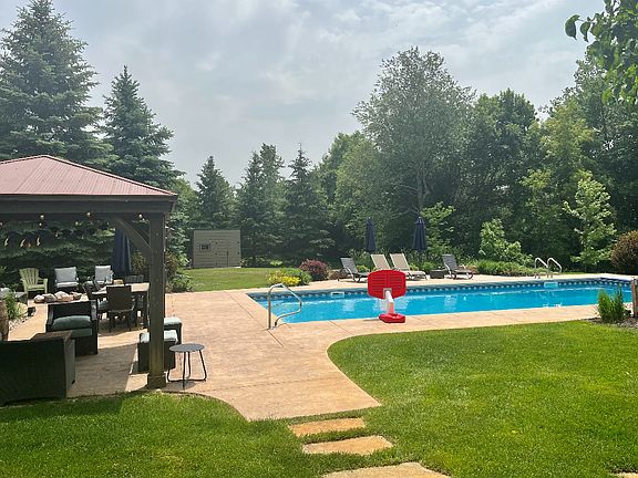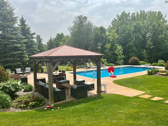 Welcome to your own slice of paradise! You will want to see this beautiful, energy efficient home located on 2.5 acres of land. This home has so much to love. Main level primary with full primary bath. In floor heat, jetted tub, double sinks, and steam shower as well as a walk in closet. Three bedrooms in the lower level. Several upgrades/updates have been done in the past year. Rustic cherry floors, tons of natural light, 2 gas fireplaces and a wine cellar you could make it through another lock down with :) Hiding under all of this snow, is a gorgeous yard. In the summer time, you will never want to leave. There is a pool with an extended shallow end and a diving board in the deep end with lights for night time swims. There is also a pergola if you need some shade and a fire pit to roast marshmallows. Seller plans to paint the exterior of the home, re-finish the hardwood floors and replace the fridge. Come take a look!