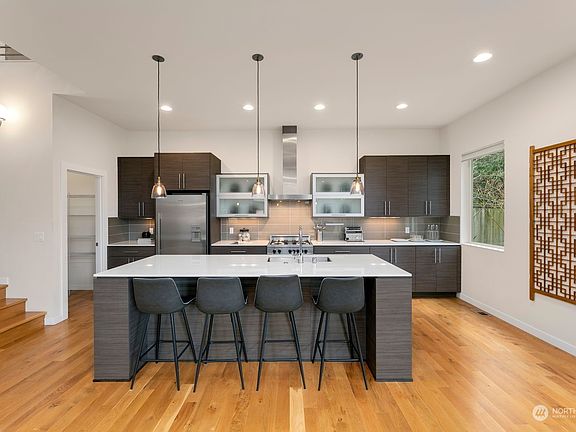 Just 2 blocks from the beach, this home offers stunning finishes & a bright great room layout. Cooks will adore the Euro-inspired quartz/stainless kitchen w/island & walk-in pantry. Serve meals in the adjacent dining space or relax in the fireside living area. 3 sliders open for BBQs on the sunny deck & patio + irrigated garden & private turf lawn for easy outdoor enjoyment. Upstairs, your luxe primary suite features dual walk-in closets & stylish 5-piece bath. 3 more beds are just down the hall (1 w/private balcony!). A bonus room, guest bath & massive rooftop deck w/fire pit await on the top floor—host parties or set up your dream office. Real hardwoods & central A/C, too! Stroll to Lincoln Park, ferry & Fauntleroy’s charming restaurants!