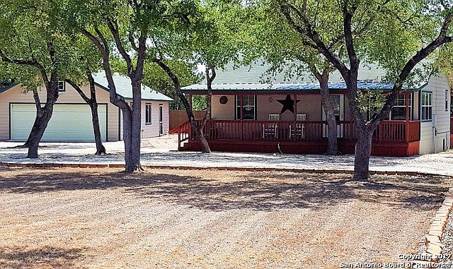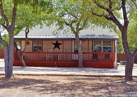 CUSTOM BUILT HILL COUNTRY CABIN LOCATED IN THE UNIQUE GATED COMMUNITY OF VALERO ESTATES. NICELY MAINTAINED & GENTLY LIVED IN. COMFORTABLE OUTDOOR LIVING ON THE COVERED FRONT AND BACK DECKS. LARGE EAT-IN KITCHEN & COZY OPEN FAMILY ROOM. OVER SIZED TWO CAR GARAGE WITH WORKSHOP, SEPARATE UTILITY ROOM AND TONS OF STORAGE. SPACIOUS LOT WITH CIRCULAR DRIVE AND PLENTY OF PARKING FOR RV AND/OR BOAT. EASY ACCESS TO HWY 281 AND SHOPPING. RV HOOKUP IS PRESENT ON LOT AND RV LIVING IS ALLOWED.