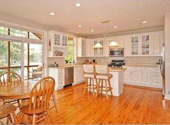 On the beautiful shores of Lake Riley this totally updated home is open & bright! Spectacular views on all floors from most of the rooms. New stainless appliances, granite counters, screened porch & deck overlooking the lake. Wonderful sandy beach, dock.
