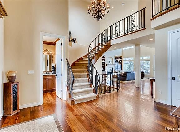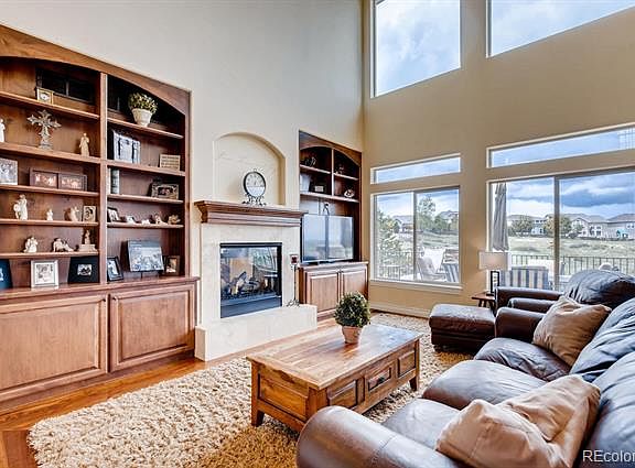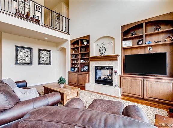 Priced to sell in coveted Spirit Ridge! This custom Colorado style home on 1.5 acres shows pride of ownership- Stunning foyer w/ soaring ceilings & wrought iron staircases. Family room w/ a 2-way gas fireplace, built-ins, & picture windows. Spacious kitchen w/ Alder wood cabinets, granite, an extended center island, & pantry. Relax upstairs in the master suite w/ fireplace & gorgeous bath w/ soaking tub & walk-in shower. 3 add. bedrooms & laundry room complete the upstairs. The basement will be your new favorite hangout w/ high ceilings, recreation area, sitting area w/ fireplace, & a full bar w/ a fridge & wine cooler. Additionally, there is a bedroom bonus hobby room & 2 bathrooms. Walk-out of the basement to the beautiful yard w/ both designed & natural landscaping & all the fun/functional features as well- play area, covered deck, & an upper deck w/ a gas line for your grill. Room to spare & views for miles, plus all the extras you could ask for. Make this home yours today!