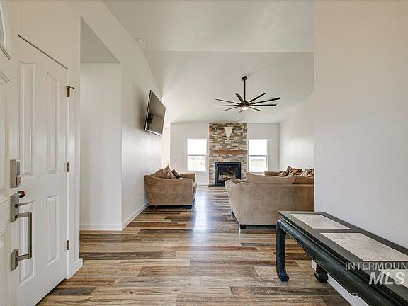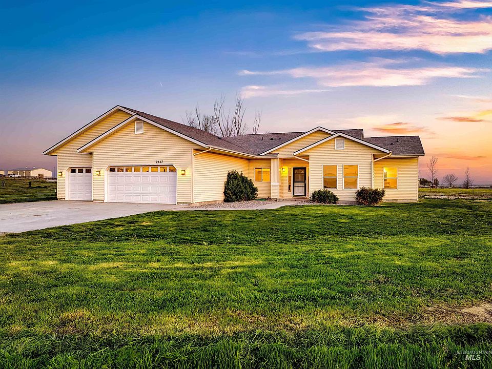 Welcome to your own slice of paradise nestled on the Kuna-Boise border! This fabulous acreage property offers the perfect blend of tranquility and convenience. Situated on 10 generous acres of land, this home provides ample space for country living! Step outside and breathe in the fresh air as you explore your expansive, fully fenced property, complete with a convenient chicken coop, hay lean-to, animal shelter and flourishing fruit trees. Cozy up to the wood fireplace indoors and effortlessly host gatherings from the integrated open living, dining, and kitchen spaces that boast granite countertops, recently upgraded LVP floors, and convenient access to the backyard patio. This home also offers abundant storage both indoors including a generous-sized laundry as well as the 3 car garage! One of the best features of this property? No HOA! Relish in the quiet luxury of the countryside!