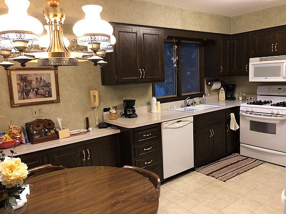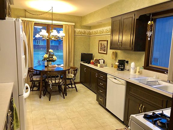 Beautiful brick & cedar ranch located on a deep private yard bordered by a creek. Quality Watson built home with poured foundation walls. Attached 2.5 car garage with shelving, water hookup, and floor drain. Master Bedroom has a walk-in closet, hardwood floor, views of the backyard, and an on-suite 3/4 bath.The other 2 bedrooms have hardwood floors & large closets that stretch the width of the room. The sunny eat-in kitchen comes with newer appliances & solid cabinetry.The adjacent formal dining room has custom window treatments & sliding glass doors leading out to the backyard patio. The living room has an abundance of windows that let in a ton of natural sunlight and provide you with a view of the private backyard. This room also has a brick wood burning fireplace that is currently equipped with an removable electric fireplace insert. Entry foyer is vaulted with an exposed wood beam. Finished basement has a wet bar, 3/4 bath, laundry, work shop, and a wood burning fireplace.Skylights