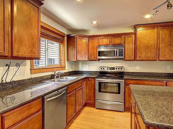 Quality built & west facing zero lot line townhomes just minutes to downtown, UW & major freeways. Around the corner from Licton Springs Park & neighborhood conveniences. Main level open-concept living space w/ bamboo floors, great natural light & 1/2 bath. Kitchen features birch cabinets, stainless steel appliances & slab granite counters. Upper level in/c two bedrooms with vaulted ceilings & tiled full bath. Lower level 3rd bedroom/office. Large attached garage w/room for storage. No HOA!