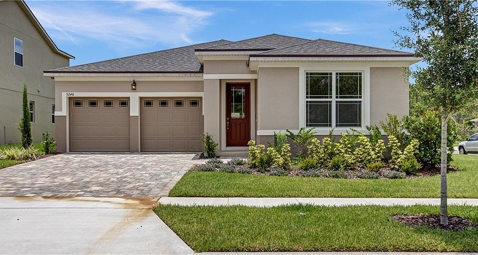 Under Construction. This Murcott floorplan with a Prairie elevation is on an ideal corner lot that features a beautiful yard from all sides. When entering the home, you are greeted with a spacious foyer. As a single-story home, there is plenty of room for everyone with a generous 2,027 square feet, including 3 bedrooms, 2.5 baths and a spacious 2 car garage. The kitchen features dark oak cabinets, granite counter tops, and stainless-steel appliances. The living space overlooks the beautiful backyard that can be seen through the four-panel multi sliding glass door. The master suite features beautifully designed tray ceilings, double sink vanity, master bath oasis, and a vast walk in closet. Additionally, high quality Whirlpool washer and dryer set are included. Located adjacent to Central Florida's world-class theme parks and resorts, Legado makes owning a piece of the magic a reality. Perhaps one of the most appealing aspects of Legado is its ability to offer rural beauty and privacy, while also allowing for modern convenience, recreation, and entertainment. With gorgeous single-family home designs, scenic home sites, and luxury amenities, your family will have access to everything they want and need in this quaint community.