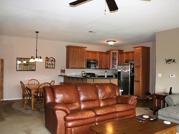 Hard to find 1st floor condo in move-in condition. Offers two bedrooms, two bathrooms and full basement with emergency egress door. Updates include; new granite, sinks, brushed nickel faucets and high-end linoleum flooring in the kitchen and bathrooms. 9 foot ceiling and sliding doors to your private patio. 2 car attached garage and in-unit laundry. Newer stainless kitchen appliances and washer/dryer included. Water included in monthly association dues.