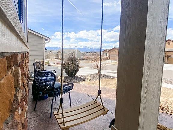Gorgeous 3-level with mountain views in Wolf Ranch! This spacious, 6BR, 3.5BA upgraded Monarch build in Wolf Ranch, Colorado lies 150 yards from Ranch Creek Elementary, is mere steps from Stonehaven Wetlands (open space, park, playground) and an easy walk to Wolf Lake. The extended front patio provides sweeping views of Pikes Peak for warm summer sunsets. The backyard features lush landscaping, overhead market lighting, whiskey barrel planters, an arbor with two bucket swings, a custom-built matching shed, an expansive patio and a separated seating area with fire pit. The main level has expanded hardwood floors throughout, a gas fireplace in the great room, gourmet kitchen with stainless steel appliances, walk-in pantry and a built-in mudroom. The main level also includes both formal and casual dining, a front room that could be used for an office and a half bathroom. The top level boasts a loft perfect for a play area or office, a generous owner’s suite with large soaking tub, separate glass tiled shower, double vanity and walk-in closet. The remainder of the top floor includes three additional bedrooms each featuring large closets, a secondary full bathroom and a spacious laundry room with cabinets and work space. The smartly finished basement includes a large flex area, bouldering wall, rough-in for future kitchen/wet bar, another two bedrooms, a full bathroom plus an unfinished storage area in the mechanical room. Other features include a deep 3-car garage, upgraded window trim in common areas, central air, whole-house humidifier, whole-house water purifier & softener, reverse osmosis water system in kitchen and low-energy lighting throughout. Exterior paint & siding new in 2019. Roof new in 2022.
