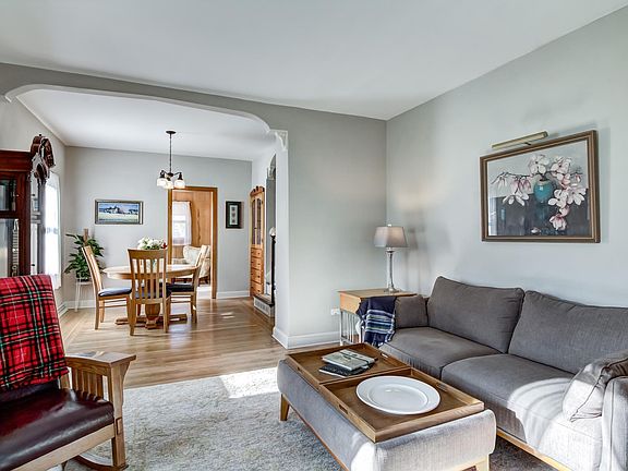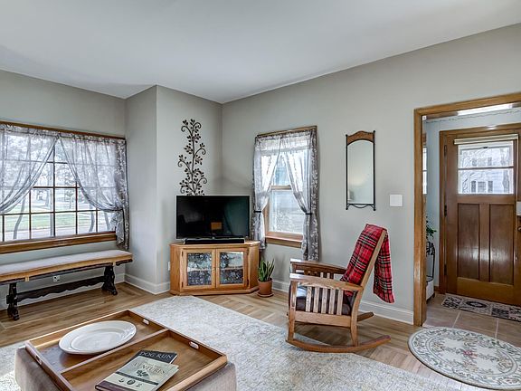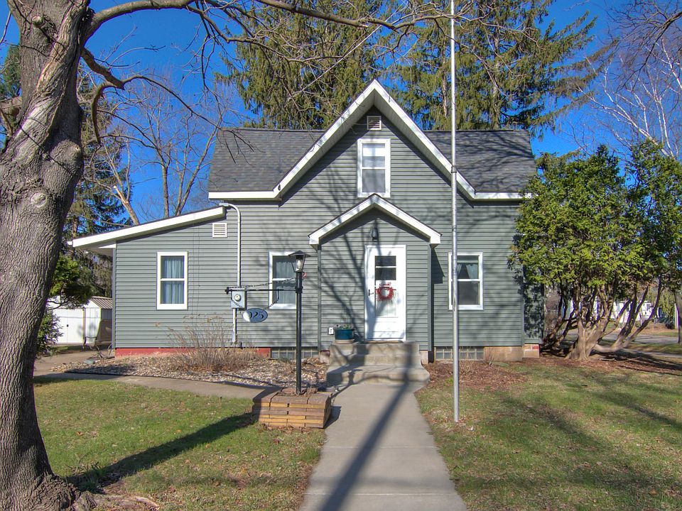 A sweet opportunity in downtown Hudson! This wonderful two story has been nicely updated: revealing the beautiful hardwood floors and high ceilings, a kitchen renovation (layout/flooring/quartz), a bath renovation, and also added an additional bath in the lower level. The previous paneling/built-ins/etc have been removed and the original character now shines. There is a main floor bedroom, three season porch, patio space, and a large partially fenced side yard. The garage is extra deep and there are two sheds to help with all the outdoor items. Soon the many perenials will fill the yard and the new trees will be leafing out. This charmer is move in ready!