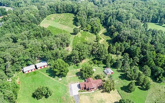 $10,000 PRICE REDUCTION! Country retreat w-750' feet of road frontage; long driveway back to private colonial all-brick home w-stately columns & covered front porch. Wood-burning FP in great room; recessed lighting. EIK w-oak cabinets; recessed lighting. Front room c/b formal living rm or dining rm. Cozy sunporch w-broken tile floor. 3 bedrooms; 2 w-direct access to baths (could be 2nd master). Laundry room w-built-in cabinets & large office area. Finished garage. Roof, water heater, & vinyl trim replaced 2011; HVAC air compressor new 2012; septic system inspected & pumped 2012. Water stove in pump house can be used as secondary heating source (reducing electric bill). Two huge workshops-each has 3 rollup garage doors and a man door. 2-stall horse barn with lean-to areas. Acres of woods and pastures-could be leased out to farmers and hunters if desired. Spring in rear of property, under the big oak tree. Bankruptcy Estate property; acceptable offer can usually close within 60 days.