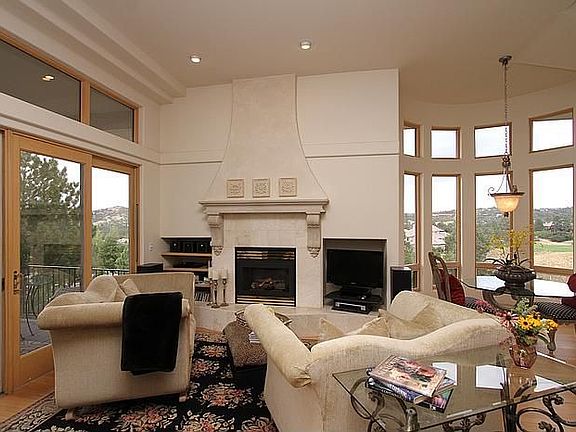 Live right on hole #7 and enjoy some of the best views in Castle Pines Village. This gorgeous ranch floor plan with unfinished walk out basement has over 3000 finished square feet and high end finishes throughout. Main level features Master suite and potential 2nd bedroom plus a separate study. 12' ceilings plus higher vaulted areas, pristine oak hardwood floors, custom fireplaces and marble counters are just a few of the elegant details you'll find here. Large formal living area boasts oversize, gallant fireplace, floor to ceiling windows and custom silk Dupioni draperies, multi-tiered crown molding and extensive plush carpeting. The kitchen features granite counter tops, custom cabinetry with no lack for storage, an eat in breakfast nook with a bay wall of windows and high end stainless steel appliances including a Thermador oven and 6 burner gas range. Hardwood floors extend to your formal dining area with beautiful fireplace, custom chandelier and wide tray ceilings.On the main floor you'll also enjoy two areas that have been used as study or office areas and a massive Master bedroom retreat with cozy fireplace, soaring vaulted ceilings with wall of windows and watch the stars from your private deck. There is also an area for a reading or sitting room and beautiful architectural details. Travel into the Master ensuite bath and get ready to have a relaxing soak in the large tub. Custom marble countertops, stunning pillar details and dual shower heads in the walk in shower. Full unfinished walk out lower level features laundry room and an abundance of storage space to fit anyones needs. Every room has a view in this fabulous retreat of a home.*Home is also available particially or fully furnished for an additional monthly fee.