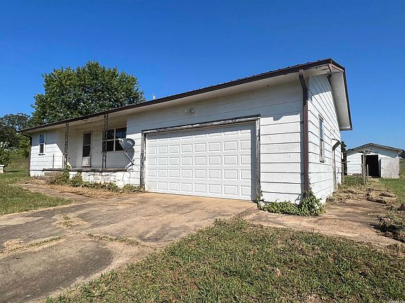 This home on the paved Banner Loop near Concord, AR features a front porch, living room, 2 bedrooms, 1 Bathroom, hardwood floors, a large kitchen and eating area, laundry room, new electric water heater, metal roof, city water, and 2-car garage with automatic opener. A few cans of paint on the already primed walls may be all this home needs to be a showplace once again. The 1+/- acre features a large separate shop/storage area, a well house over the original well, and an old cistern. Sold AS IS.