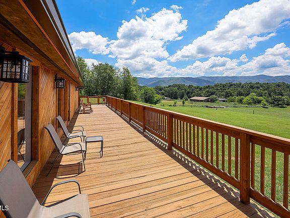 Must-see rustic contemporary cedar home on over six beautiful level acres surrounded by breathtaking views of the Appalachian Mountains. This home features an inground 12-foot-deep pool and full length deck alongside a 180 degree view of mountains. This home includes front and back door atriums, high ceilings throughout, large bedrooms with private bathrooms, and a spacious living area overlooking the pool. Step into the basement to the spacious 47 X 23.5 feet rec room, 28.5 X 24 feet work studio, 39 X 22.5 feet concrete block safe room and an additional bedroom. Kitchen renovation plans are readily available at the buyer's convenience. This property is in close proximity to the Bristol speedway, Jonesboro Storytelling Festival, white water rafting, Gatlinburg, Dollywood, Appalachian Trail, University of TN, & Asheville, TN. 24 hour Notice To Show.