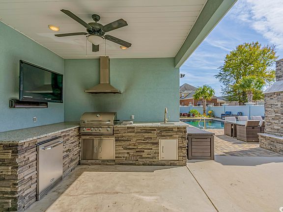 Welcome to the desirable Bluffs on the Waterway community, conveniently located in Carolina Forest near the Intracoastal Waterway. Why wait on new construction when this custom, stunning four year old home has it all and is ready for you! A fantastic layout with 5 bedrooms and 4 bathrooms and over 3,200 square feet, the goodness keeps going into the backyard with a beautiful outdoor space. Enjoy entertaining at your private pool, outdoor wood burning fireplace, and cook in the summer kitchen under the covered lanai and enjoy privacy behind the fence. From the moment you walk through the front door and into the tall foyer, you will appreciate the details that have gone into this home. The kitchen has a large island, plenty of counter seating and is open to the living room with fireplace and built in bookshelves. The main level primary en suite is equipped with walk in closets and a gorgeous bathroom with two vanities, garden tub and shower. Upstairs has a large loft which is a great flex space for whatever your needs may be. The Bluffs is conveniently located 10-15 minutes to the beach, close to schools, restaurants, grocery stores, healthcare and Hwy. 31 for quick access to other areas of the Grand Strand. This gated community has two private clubhouses, a resort-style community pool, a children’s pool, tennis courts, playground, a neighborhood boat launch ramp and boat/RV storage for a small additional cost, walking and biking areas.
