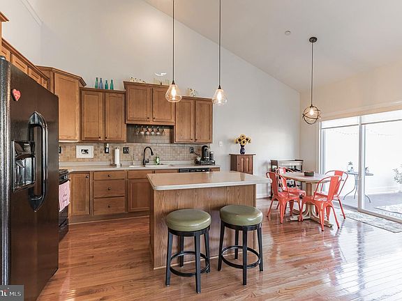 1st FLOOR MASTER SUITE. End unit w/side entry. The open layout, hardwood and natural light provide a warm welcome. Formal Dining Rm w/walk-out bay window & volume ceiling that connects to the Living/Great Rm, the two story ceilings give this home a dynamic feel. The kitchen boasts custom tile, a center island, and a breakfast area. The master suite hosts two walk in closests & a full bath w/double bowl vanity & seated stall shower. Convenient 1st flr laundry rm & powder room round out this 1st flr living. The 2nd level story has 2 additional bedrooms & full bath w/tub. The large deck and well kept community makes the outdoor space and entertaining perfect. NEW ROOF, Fresh paint and much more ! Belgium Block Curbing, public sidewalks, Greenway Nature Trail, Community Gazebo & MUCH MORE!