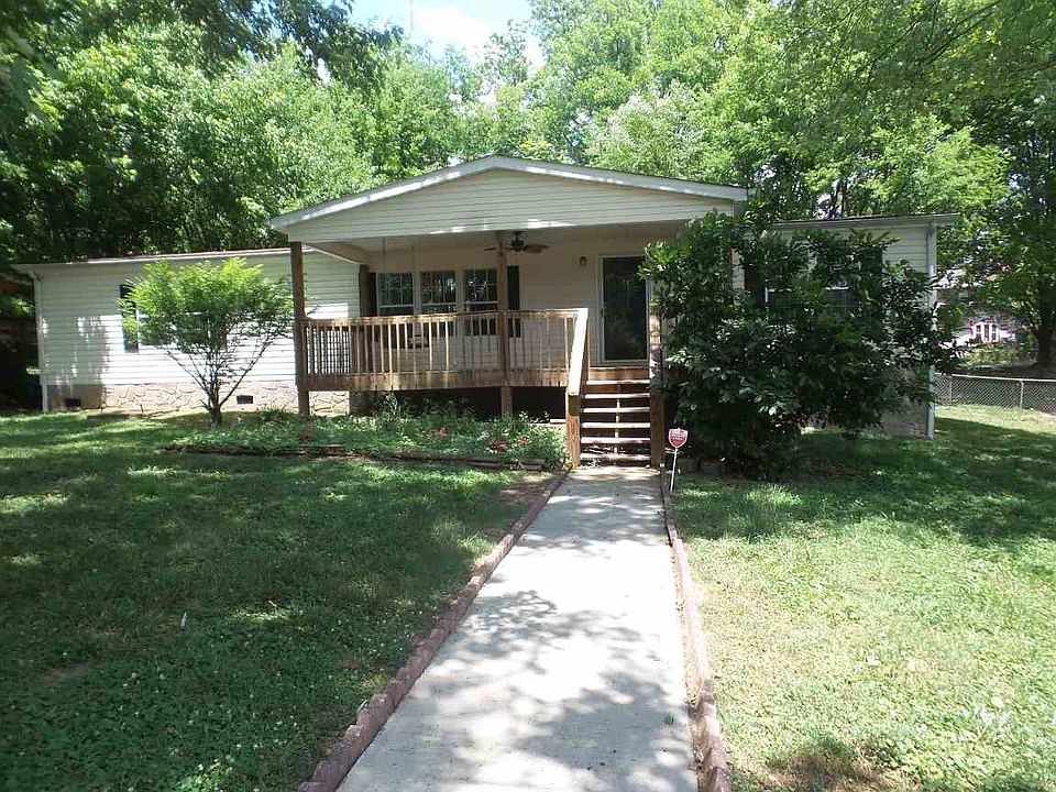 Beautifully refurbished home, with large front covered porch, completely fenced on level . park like setting lot, large rear deck overlooking private yard with creek. Fresh paint, new carpet, new kitchen flooring, all appliances stay. Huge open living room with wood burning fireplace. Lots of counter space and buffet in the galley kitchen with utility room, combo dining are with living room. Oversized master with large en-suite bathroom with dual vanities, soaking tub, walk in shower and walk in closet, 2 additional guest bedrooms with guest bathroom. Large yard also has storage shed. Property eligible for 100% financing with THDA or VA loan, 96.5% financing with FHA loan.