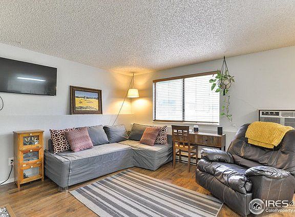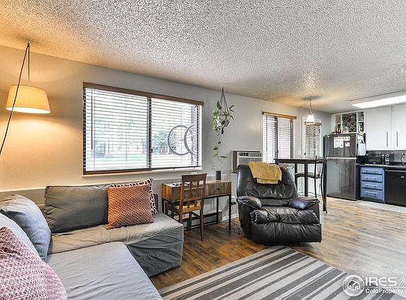 Great, affordable end unit condo, in the heart of midtown Ft Collins. Cozy open floorplan w/fireplace inside & patio opening to park like grassy setting. Turn key-everything stays- refrigerator, dishwasher, stove, clothes washer & dryer. Exterior storage closet off patio for storage. This Mission Hills subdivision is convenient to schools, parks, trails, shopping & dining. HOA includes water, sewer, trash, exterior insurance, exterior maintenance, snow removal & common area/ground maintenance.