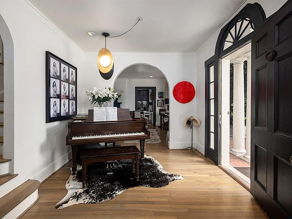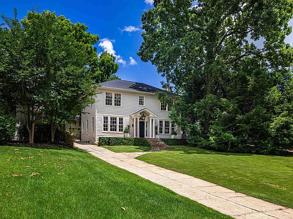 Nestled on one of Forest Park’s most sought-after streets, this elegant Georgian-style home blends timeless character with modern comfort. The main house offers 3 bedrooms and 3.5 baths, while a charming studio above the 2-car garage provides ideal space for guest quarters or a home office. Inside, a gracious foyer opens to a large dining room and spacious living room with fireplace and accordion doors to a stone patio. A cozy den adjoins the living room, and the kitchen features solid-surface counters, stainless appliances, and a wall of windows overlooking the landscaped backyard. The main level also includes a powder room and laundry with slate floors. Upstairs, the spacious primary suite boasts a dressing room, screened porch, and spa-like bathroom with heated floors, jetted soaking tub, double vanity, and a large picture window. Filled with natural light and enhanced by professionally designed stonework and gardens, this home also offers alley access at the rear.