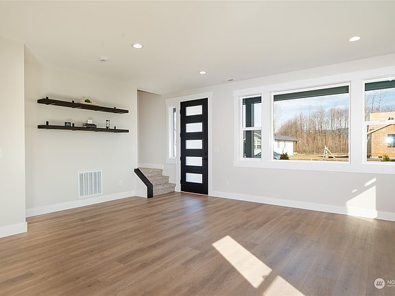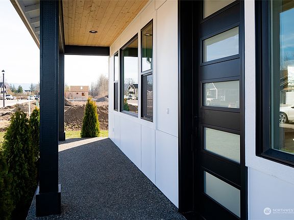 Welcome home to this stunning property in Nooksack! Step inside & get ready to be amazed. The living room features stained shelves & beams with black brackets, adding a modern & stylish touch. The fireplace features marble/stone, douglas fir beams, a TV bracket & stand. The kitchen has soft-close dove-tail cabinets, black quartzite sink, quartz countertops, & a black matte appliance package with slide-in oven. Ginormous 12x25 covered porch in the back is perfect for entertaining. The landscaping is a beautiful & low-maintenance. Upgraded front door & garage door adds a touch of elegance to the home. The exposed concrete in the driveway & porches adds durability & style. Come experience the beauty & craftsmanship firsthand.