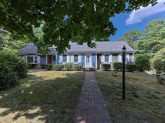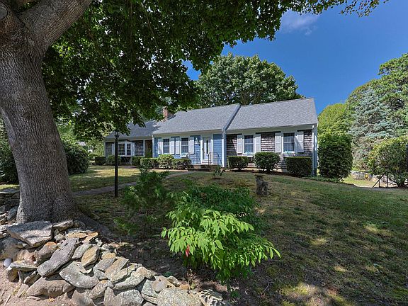 This well appointed, expanded cape is situated on the corner of Crowell's Bog and Newport Rd in the highly sought after neighborhood of Sheep Pond Estates, with deeded beach rights to two access points on Sheep Pond. The closest access is 0.2 miles, with stairs to the pond, best for kayaking and boarding. Sheep Pond Beach Ass. parking area, beach and boat racks are a 0.5 mile trek from the house. Built in 1972, the original house had three bedrooms, 2 full baths, an eat-in kitchen and large, front living room. Shortly after, the 2nd, open living space and laundry room was added beyond the kitchen. Gleaming hardwood floors bring the first floor together. One of the bedrooms and full bath are located in the walkout basement, next to the workshop and 1 car garage. There's added storage under the addition with ground level, garage door access. This home has natural gas heat, new roof in 2021, a large deck and vegetable garden. Come enjoy pond life in the heart of Brewster.