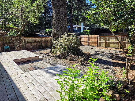 Three bedroom cottage in First Addition. Just a 6 minute walk to Forest Hills Elementary School or 10-15 minutes walk to Lake Oswego's A&B Ave shopping, restaurants and services. Master bedroom includes direct access to the deck and fully fenced back yard, as well as a walk-in closet. Living room includes a cozy gas parlour stove. Hardwood and tile floors throughout. Laundry machines in the mudroom. Covered off-street parking under the carport. Available immediately. Owner pays for water and garbage service. Tenant pays for gas, electricity and phone/internet. Move -in expenses include first month's rent (prorated), last month's rent and damage deposit. No smoking. Flexible lease term. Available furnished for additional $200/mo.