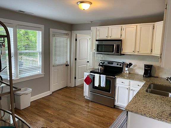 This cozy cottage is 1000 sq. ft. with a living room, dinning room, full kitchen, master bedroom with master bath, guest bedroom, guest bathroom, and a washer & dryer. The floors throughout the living room, dinning room, and kitchen are hardwoods with carpet in each bedroom. The kitchen has granite counter tops, subway tile backsplash, stove, oven, microwave, dishwasher, and fridge. The master bath has a double vanity with a tub/shower. The guest bath which is located off the kitchen has a single vanity, tub/shower. The house has a deck and is great for entertaining. Owner pays for lawn care. Tenant responsible for all utilities. Up to two small pets allowed. No smoking.