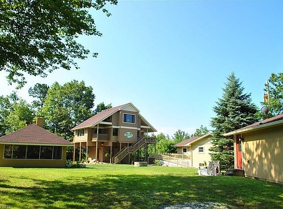 Own a mtn. top! Unique private retreat property features 12.8 ac.+/-, year round long range views to 8,000 ac. land conservancy, 14 bedrooms, 13 baths, large dining hall, game room, catering kitchen, large observation deck, tons of storage, a fire pit, hiking trails, and a screen pavilion. All buildings updated and move in ready. (Additional acreage available.) Could be used as B&B, event center. All furnishings included(sans personal furniture & items).Listing agent must accompany all showings.