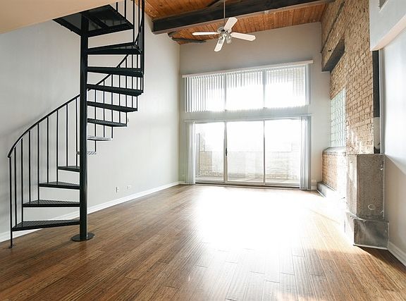 Rarely available spacious loft-style one bedroom apartment located in coveted downtown Hubbard Woods. Stylish unit features exposed brick wall with 20 ft exposed timber & beamed ceilings, modern kitchen with breakfast bar, hardwood floors on main level, private balcony, great closet space, and central A/C & heat. Spiral staircase leads up to the bedroom which overlooks first floor living area. Coin-laundry in-building on same floor. Convenient location steps to restaurants, shops, cafes & Walgreens! Located half block to Hubbard Woods Metra station & less than a mile to Tower Road Beach! Parking is available for $125/month. Available now!