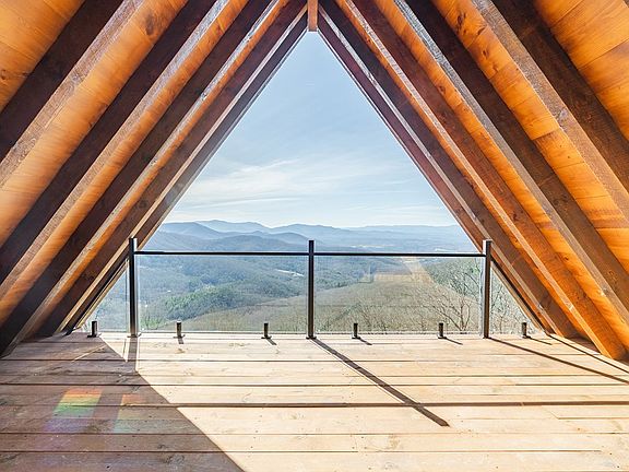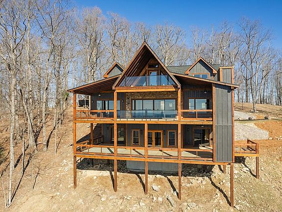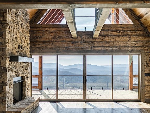 Welcome to The Lodge at Heard's Ridge // Situated at over 3,100 ft of elevation, this is truly an on top of the world view of the North Georgia landscape. Overlooking unbelievable 180-degree views of Lake Blue Ridge, Chattahoochee National Forest, and multiple layers of mountains, this is one you have to see to believe. Curated to captivate the view, this home is complete with three layers of oversized decks, two outdoor fireplaces, a glass catwalk leading to the crow's nest, and incredible views from literally every room. Still under construction, this home is still taking shape, but will soon be a showcase of modern rustic design. Finished with poplar wood ceilings, circle-sawn real hardwood floors, glass railings to leave the view unobstructed, stone accents throughout, and low maintenance hardie-board siding, this home is the definition of luxury mountain living. Bordered by USFS and with an additional build-able lot with amazing long range views included with the sale, this home has unparalleled privacy and allows you to escape to your own private getaway. This would be an amazing rental property and is unrestricted with room to roam. Come see for yourself today!