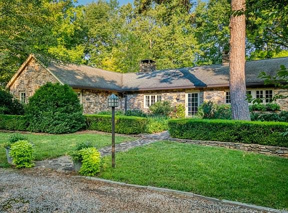Charming stone cottage with wonderful mountain views on 5 acres in Tryon's Historic Hunting Country! Private location but just minutes to downtown Tryon. This beautifully maintained, quality home has exquisite interiors and landscaping. In the heart of the FETA trail system, includes a spacious separate guest cottage, garage, and some level cleared land for pets! Old World elegance includes five stone & masonry fireplaces, beamed ceilings, cedar closets, pantry - this property has it all! Classic!