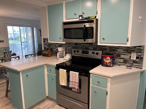 This is the perfect place to own. This home with its Key West Cottage vibe is already updated/remodeled for you with a rental income from now through May with repeat renters that care for it as much as the owners. This home is spotless. Choosing to purchase now gives you a great opportunity to gain some rental income, it's a win-win for you. The 2 bedroom/2 full bath home is turnkey, including new furniture, bikes, grill, right down to the fully appointed kitchen and linens. Hurricane Ian paid a visit and repairs to the lanai and ceiling have been completed. Entering the home from sliders off the side lanai the living area has a set of 6 bay windows and brand-new furniture. There is newer carpeting here and new sub floors and seamless laminate wood flooring throughout the rest of the home last year. The kitchen has new quartz countertops, glass backsplash, stainless steel appliances, breakfast bar and pantry. It's all here for you. The guest bedroom has double closets with a built-in dresser. Across is the guest bath with a tiled tub/shower, tiled floor, vanity and sink and a sunny floor to ceiling window. The master bedroom has a king bed, new furniture and three closets along with a built-in set of drawers. The ensuite bath has a curved step in shower and pedestal sink. The A/C is new this year and the roof has been recently coated. The Electric hot water heater located in the shed is approximately 2 to 3 years old. There is also a W/D and utility sink. Plenty of room for tools with shelving. The home has chair railing throughout and it makes you smile with its tropical color scheme. There is even a rain barrel to catch water for your flowers. The Bay Indies Community is very welcoming and offers everything you can imagine to keeping an active lifestyle with a laid-back tranquil atmosphere. There are 3 pools, spas, tennis/pickleball/bocce courts, a 3-mile walking path around the park and plenty of room to walk your pet. Lots of indoor activities with cards, concerts, veterans club dinners, trivia night and so much more. Downtown Venice has cultural events, shopping, restaurants and beautiful beaches along with fishing pier, and local golfing. What more could you ask for with having a rental income while taking the stress out of an immediate move. All listing information given to us is considered appropriate and reliable but should be independently verified through personal inspection by appropriate professionals. Home must be maintained to the Community prospectus. The lot rent is determined by the community office and covers all amenities offered including property taxes and lawn maintenance.