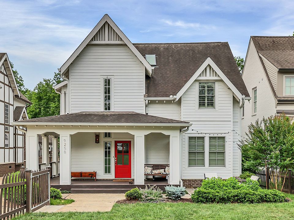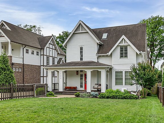 Location! Location! Location! This stunner is just steps away from 12 South and Sevier Park. Take a stroll to all of your favorite restaurants and shops, or enjoy a cup of coffee while sitting on your wrap around porch. This charming, happy house has it all... hardwood floors, vaulted ceilings with wood beams and skylights, and wait until you see the wood walls! New built-ins w/new fp, gourmet kitchen, stainless appliances and walk in pantry. 2 Primary suites, one on the main level and one upstairs, an open loft overlooking the living room that can be used for an office space or lounging area. Outdoor balcony and irrigation system for the new sod the owners put in. House is attached from garage, making it feel like a true single family home. No HOA fees. You don't want to miss this!