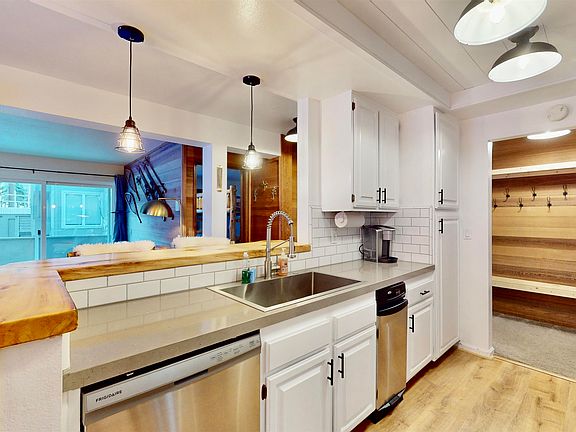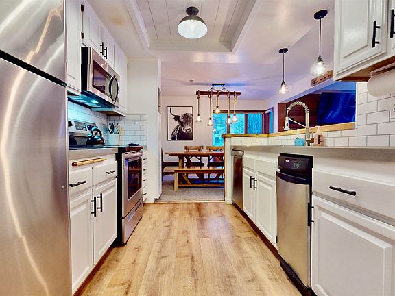 Welcome to your stunning mountain retreat in Mammoth Lakes! This beautifully updated condo, nestled just across from the slopes at Canyon Lodge, offers a perfect blend of comfort and convenience. Step inside to discover a modern and inviting living space, adorned with tasteful furnishings and thoughtful design elements. The open floor plan creates a warm and welcoming atmosphere, with large windows framing a nice view of the top of Mammoth Mountain. The well-appointed kitchen is a chef's dream, featuring top-of-the-line appliances, sleek countertops, and ample storage space. Whether you're preparing a gourmet meal for friends or a quick snack after a day on the slopes, this kitchen is both stylish and functional. After a day of outdoor adventures, unwind in the cozy living area, complete with a pellet stove fireplace that adds both warmth and charm to the space. The comfortable furnishings provide the perfect spot to relax and recount the day's activities. The condo boasts a spacious bedroom with plush bedding and ample storage, ensuring a restful night's sleep. The second bedroom offers queen bunks. The updated bathrooms feature modern fixtures and a soothing ambiance. One of the standout features of this condo is its prime location, just steps away from the slopes at Canyon Lodge. Whether you're a winter sports enthusiast or a summer explorer, the accessibility to outdoor activities is unparalleled. For added convenience, the property includes underground parking, providing a secure and hassle-free experience for residents and guests. This sought-after amenity ensures that your vehicle is protected from the elements, especially during the snowy winter months. As an added bonus, this condo has proven to be an excellent investment with great nightly rental income. Its popularity as a rental property makes it not only a delightful retreat for you but also a smart financial decision. HOA includes cable and WIFI. Embrace the mountain lifestyle in Mammoth Lakes!